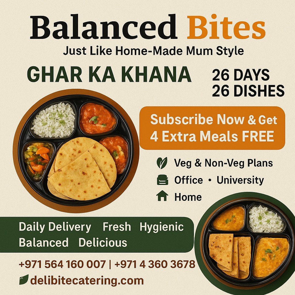 Balanced Bites – Indian Tiffin Service Dubai | Ghar Ka Khana, Every Day Tired of oily takeouts or skipping meals